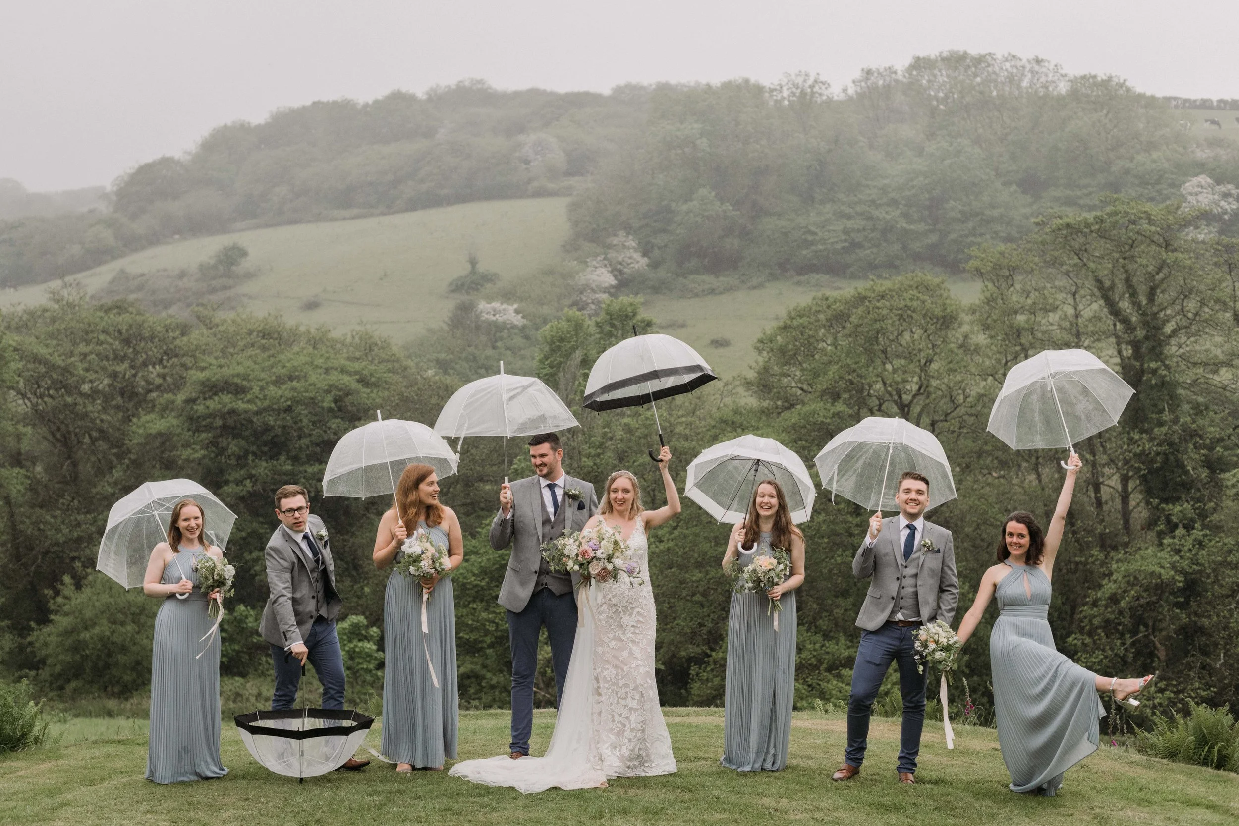 Clear umbrellas are always a good choice at weddings too! They go with all colour schemes and don’t distract from the pictures too much. In fact, I even think they look quite cute when they’re covered in rain drops.