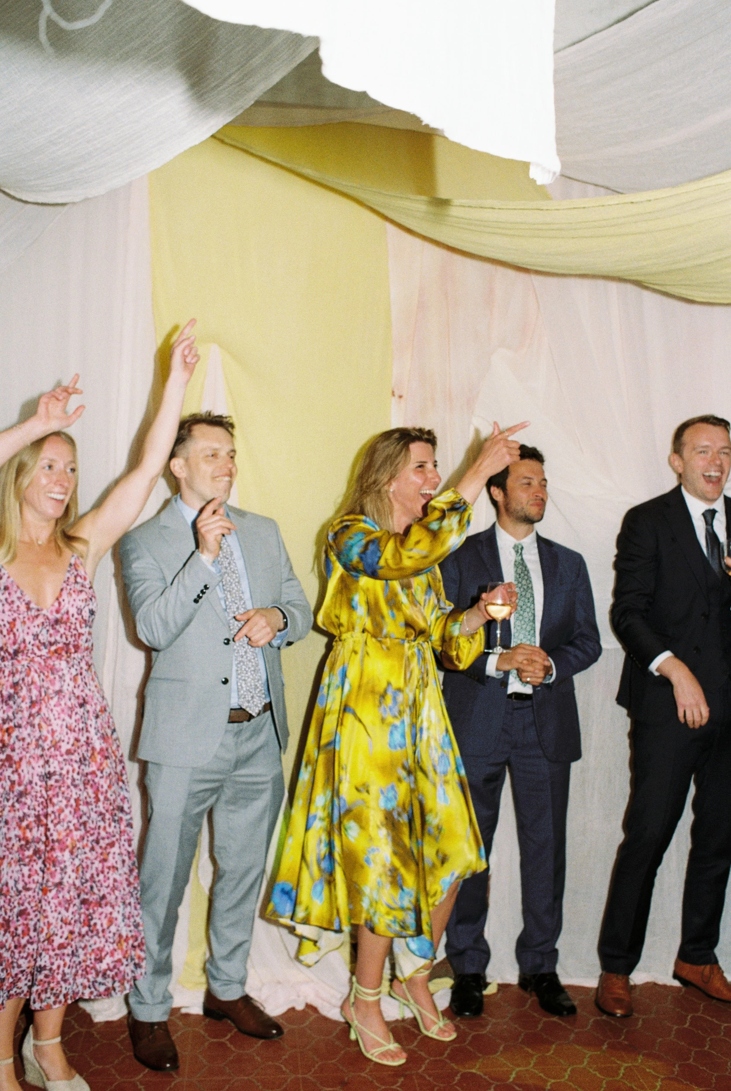 All the pastel yellow drapery in the refectory part of the venue looked incredible lit up and glowing for the evening. They had a DJ play a really nostalgic and refined playlist of the 90βs strongest club songs which got everybody really dancing.