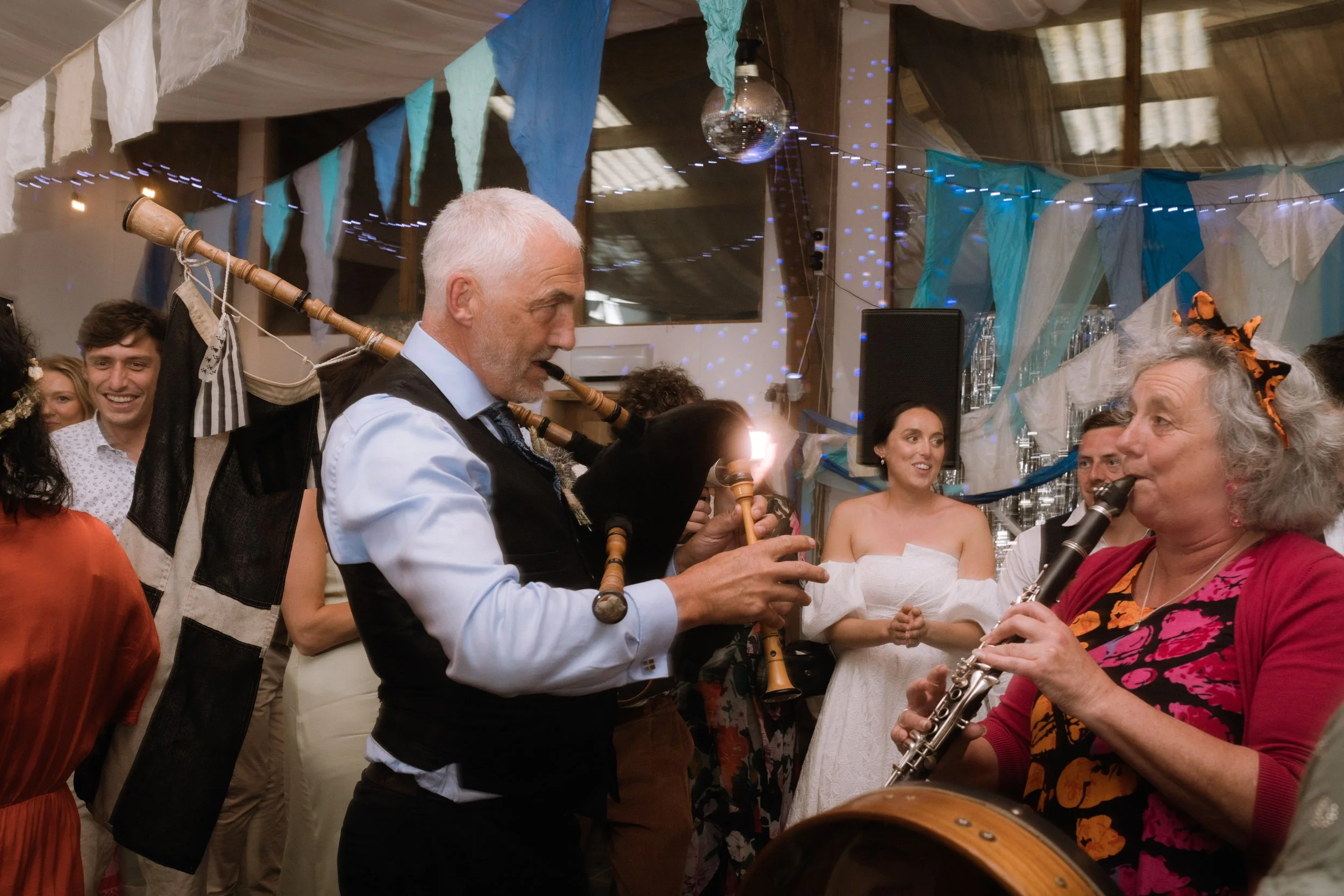 This is probably my favourite first dance shot that Iβve ever taken. The nostalgiaβ¦ the movement, the swish! The groomβs family are members of a Cornish Nos Lowen band called Skillywidden and they provided the most incredible evenings entertainment. The energy was BIG and they got the whole room dancing. It far surpassed any Ceilidh Iβve ever seen. It was on a different level. Iβd highly recommend considering a Nos Lowen at your wedding if youβre looking for a high energy alternative to a Ceilidh.