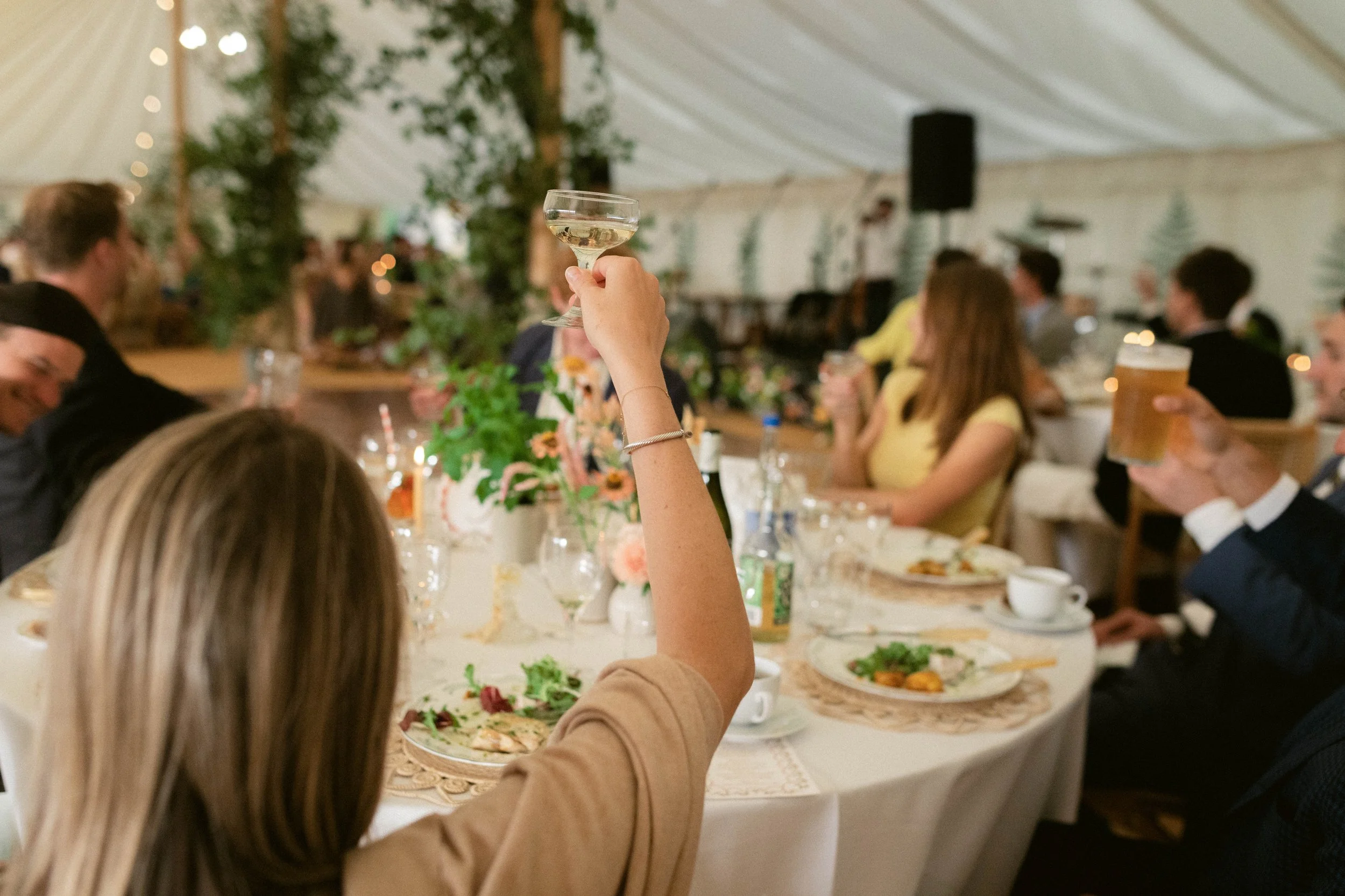 With the dramatic sea mist rolling in, Glen & Jake made their vows outdoors, just as they had planned, undeterred by the downpour (for these guys are true adventurers) which gave way to beautiful, renaissance clouds worthy of a Turner Painting for the evening portion. The emphasis for their day was on great food and the party and it wasnβt long before the crowd were really giving it beans on the dance floor and the bride and groom found themselves surfing the crowd. From Oysters & Champagne to cocktails and mirrorballs, the couple and their guests really brought the vibes and a great rainbow at dusk that appeared just for them was a paid actor.