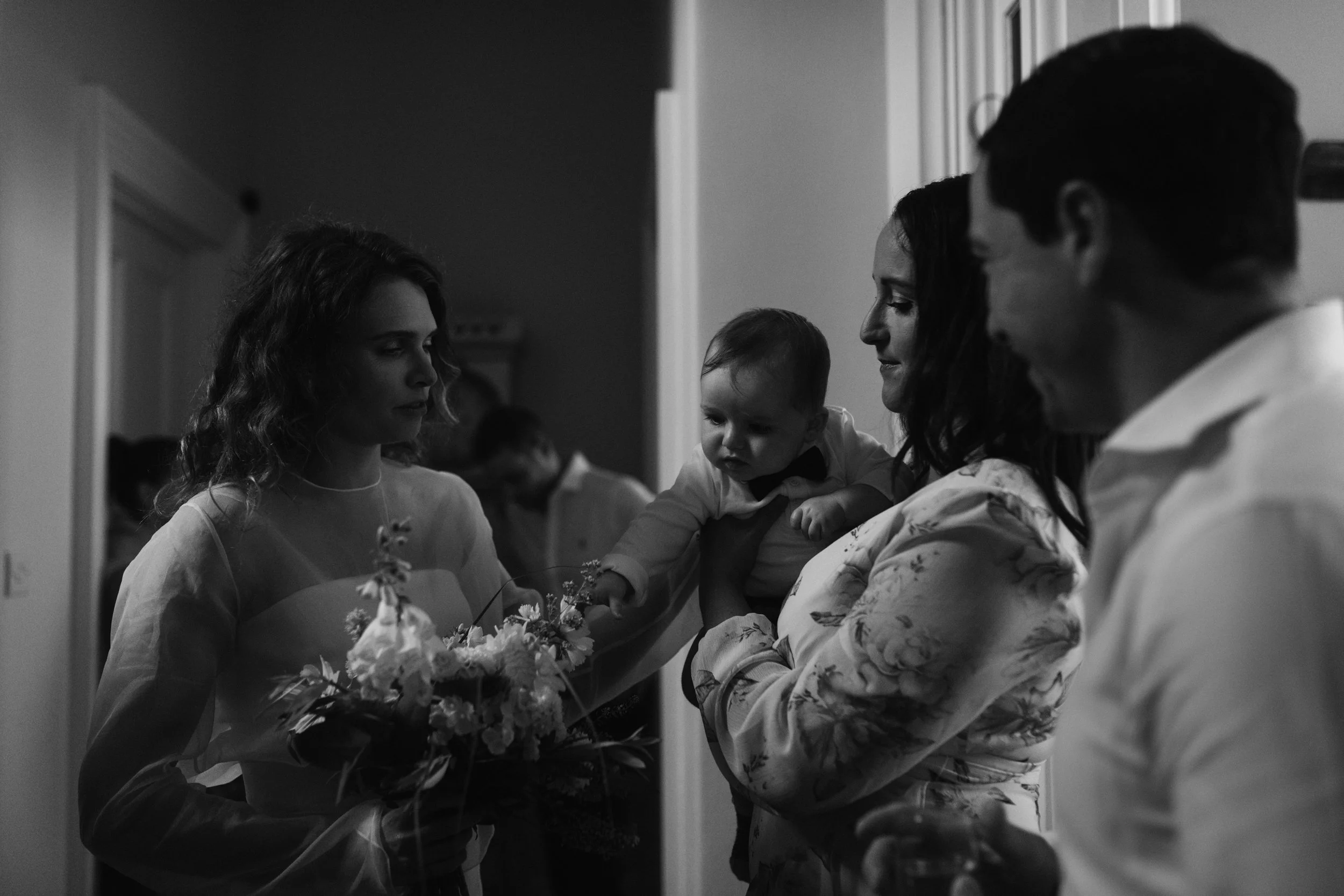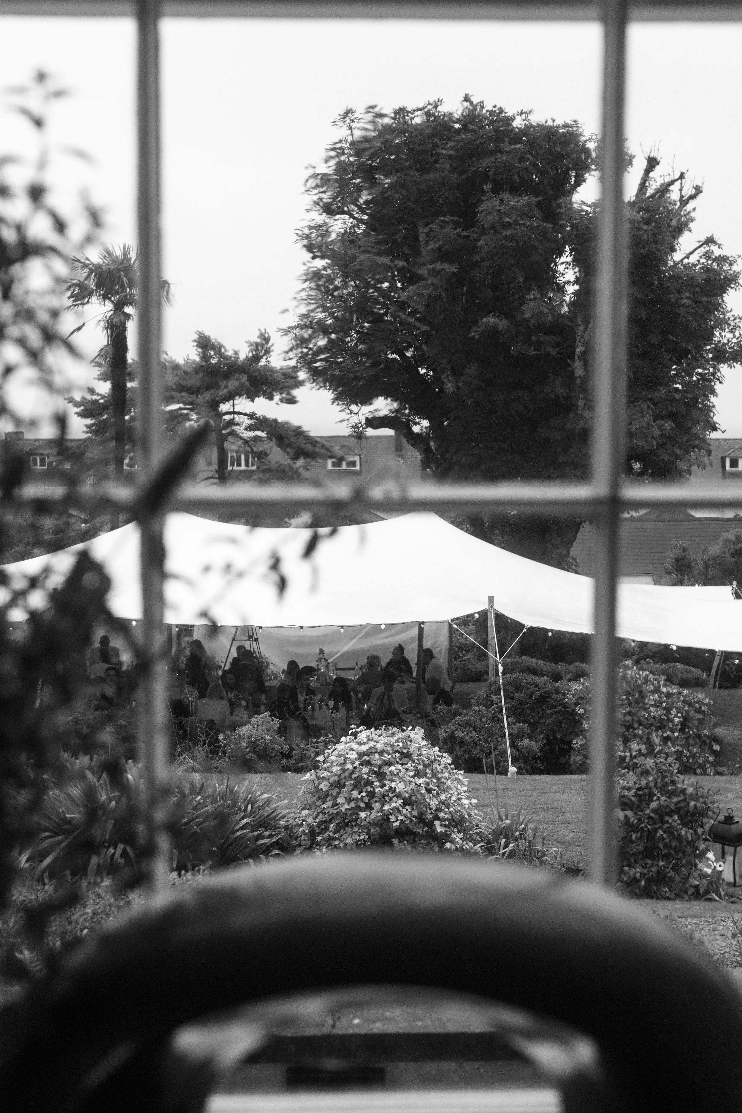 Lamorna & Dino shared a first look in the bedroom. We captured a few portraits of them together before they walked hand in hand, braving the rain and wind for their outdoor ceremony in the open stretch tent which their family had lovingly made a few modifications to in order to shelter everyone from the rain.