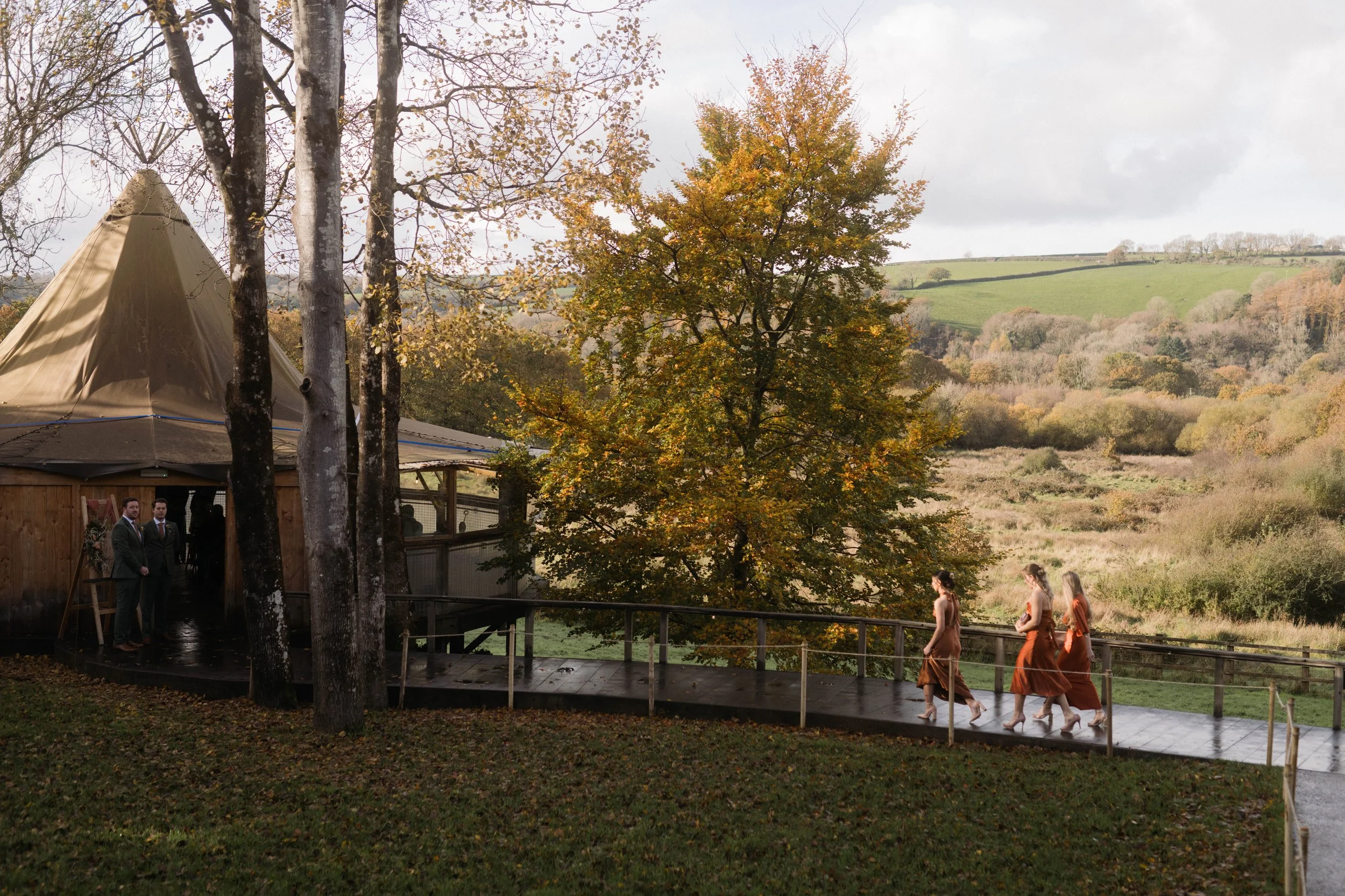 After a bridesmaids reveal in front of the big white farmhouse, it was time to head down to the ceremony space - a canvas tipi with panoramic views over the rolling autumn hills. Lily & Jack had a civil, legal wedding with readings from their loved ones.