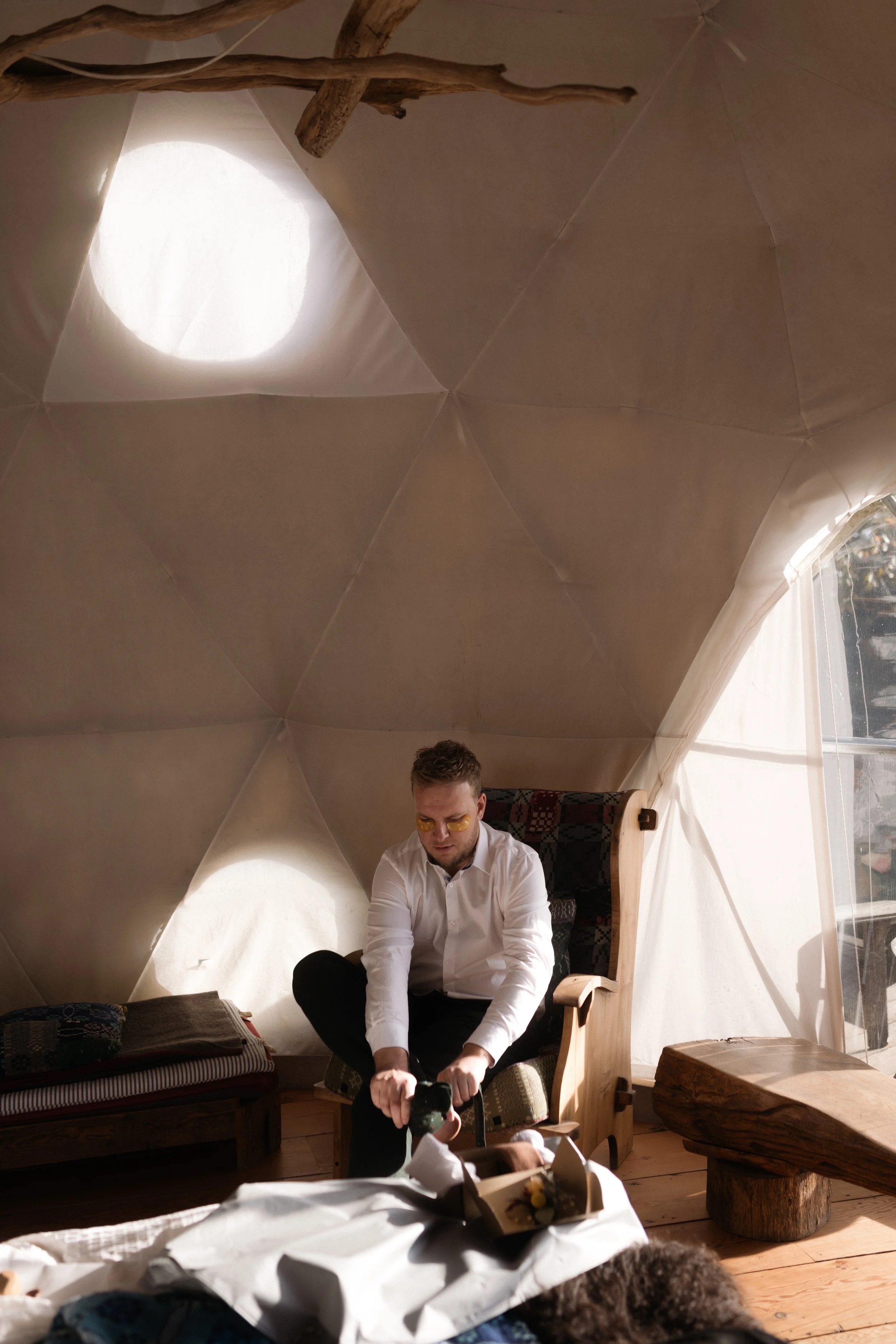 We started early, up with the larks at Dawn. Lily & Jack kindly put us up on site at Fforest in their glamping accommodation so we were able to capture some of that incredible early winter sunrise over the valley and had a bit of extra time to capture some of the boys getting ready. Having everything happen all in one place has so many advantages.